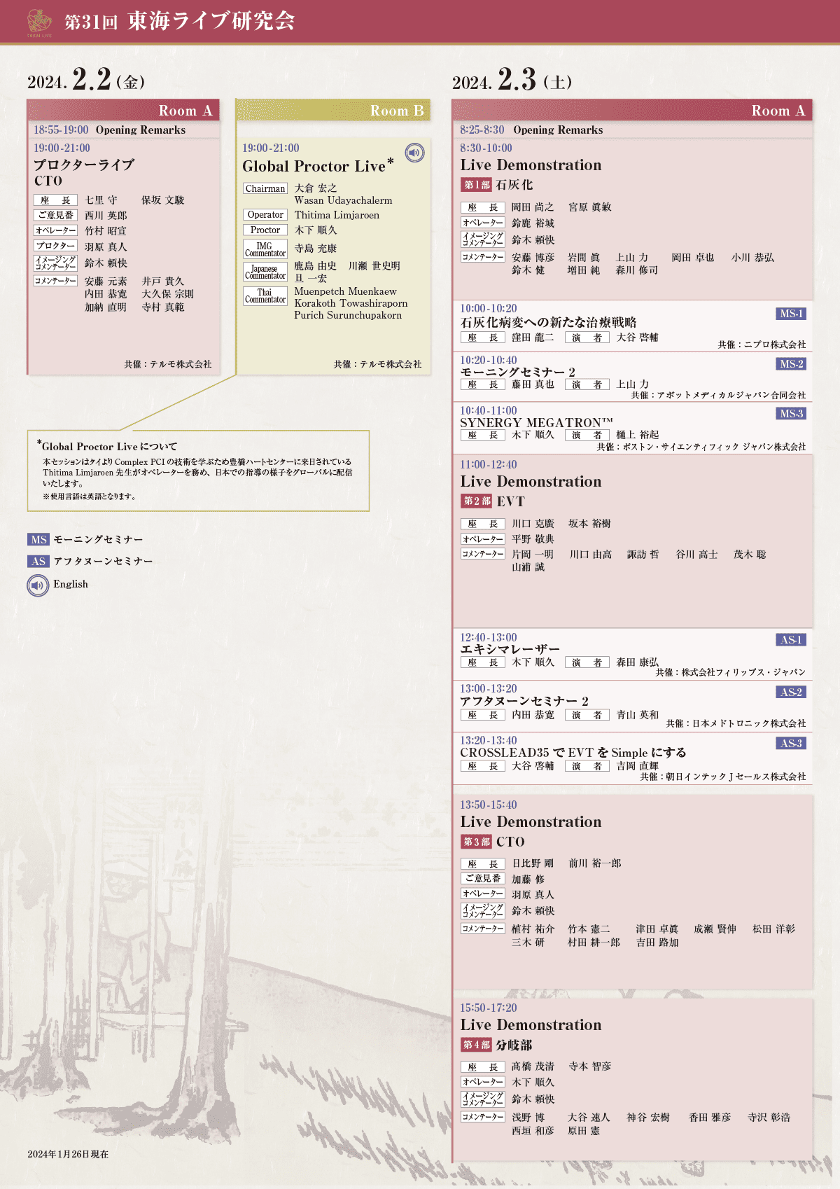第31回東海ライブ研究会を2024年2月2日(金) - 2月3日(土)にWEB配信にて開催させていただく事となりました。